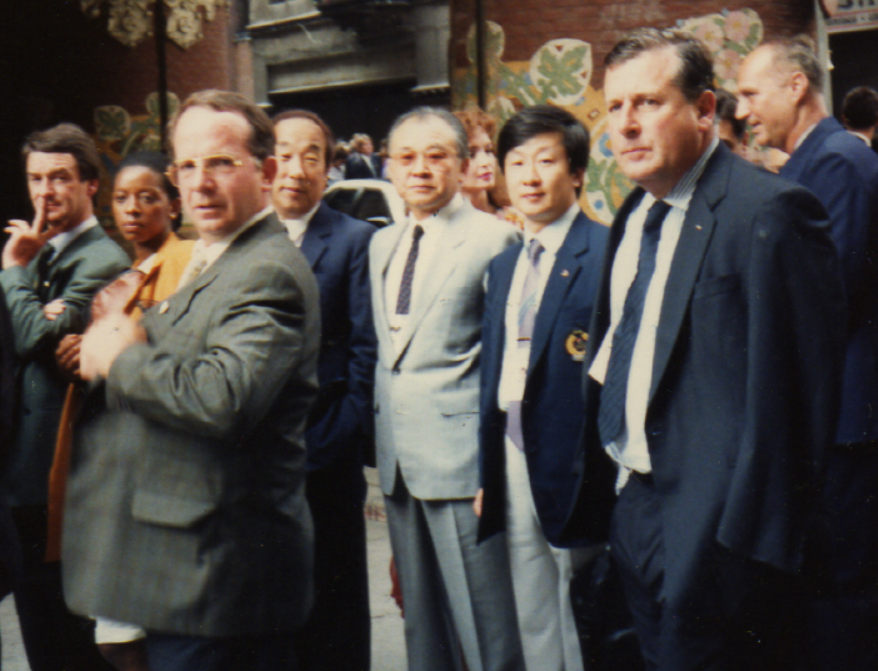 (1991년 Barcelona개최 ANOC총회에서 사진 우측이 Francois Carrard IOC정무 담당 사무총장, 필자, 최만립 당시 KOC부위원장 겸 명예총무, 박용성 대한유도연맹회장)