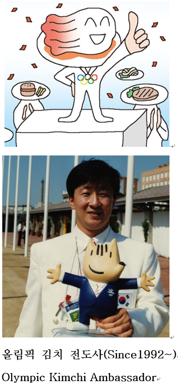 Barcelona1992올림픽조직위원회 식음료담당관(F&B Manager)과 1991년 한국선수단 현지사전조사단 방문 시 한국식당에 초대하여 김치와 불고기 등 한식을 대접하며 설득하여 당시 두산 종가집김치를 최초로 올림픽선수촌 공식음식으로 채택하도록 막후 교섭을 통해 성사시킨 바 있습니다.