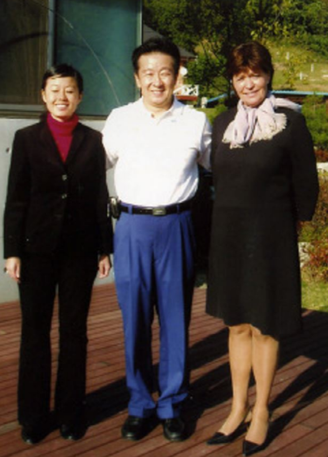 (양평 전원주택에 설치한 평산스포츠박물관 방문 차/좌로부터 한국 입양아 출신 IOC직원, 필자, Francoise Zweifel IOC사무총장-당시 IOC올림픽박물관장)